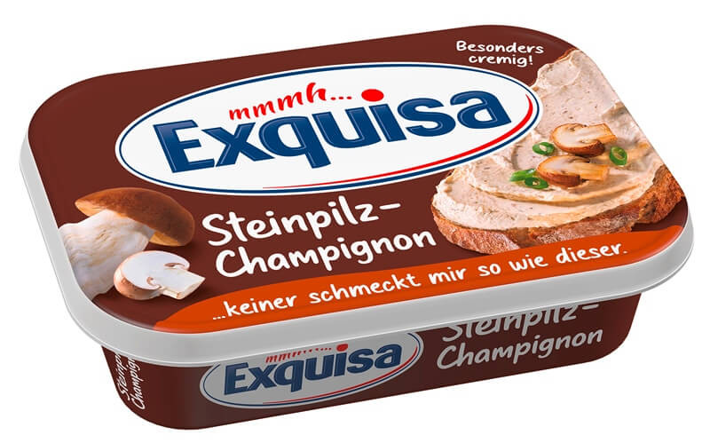 Különösen krémes Exquisa krémsajt diós és pikáns vargányagombával és aromás gombákkal. Kenyérre kenve is finom és különösen alkalmas főzéshez és mártogatáshoz,
